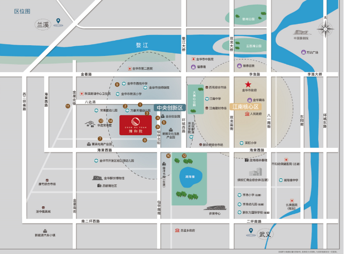萬(wàn)科臻和院位于金華市經(jīng)開(kāi)區,南鄰湖海塘板塊,北靠八達路及萬(wàn)豪天禧社區、東臨仙華北街(斜對面為浙中進(jìn)口葡萄酒市場(chǎng))、南接美和路、屬于江南主城核心板塊;距離市政府直線(xiàn)約3公里,毗鄰規劃中的中央創(chuàng )新區;沿八達路往東可直達江南銀泰商圈,美和路往東約500米可達金職院,周邊配套十分成熟 。