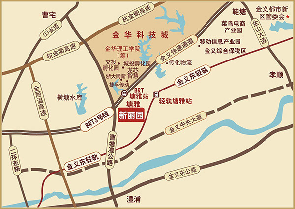 金義東輕軌建成后,將以輕軌塘雅站為交通中心輻射四周,大大縮短了該區塊的出行時(shí)間。輕軌塘雅站距茂新·新麗園項目直線(xiàn)距離僅約1.8公里。